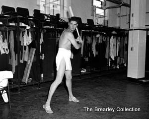 Ted Williams practices his swing in the Red Sox clubhouse - 1942