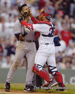 Alex Rodriguez and Jason Varitek brawl after Rodriguez is hit by a Bronson Arroyo pitch. Red Sox win 11-10 with 3 runs off Mariano Rivera in the bottom of the 9th. - July 24, 2004